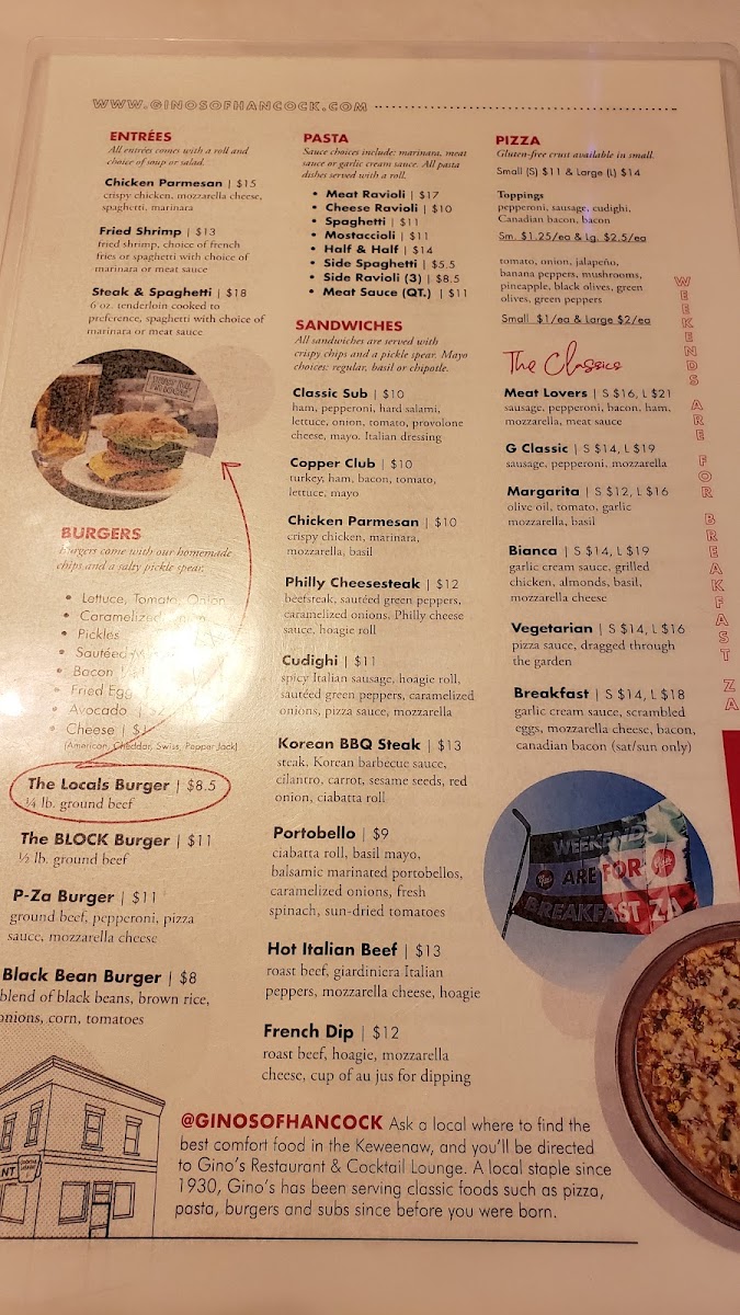 Welcome to Gino’s Restaurant & Cocktail Lounge, a beloved culinary gem located at 800 Quincy St, Hancock, MI 49930. Nestled in the heart of Hancock, Gino's is more than just a restaurant; it’s a community hub that offers a delightful blend of comfort food, unique cocktails, and warm hospitality.